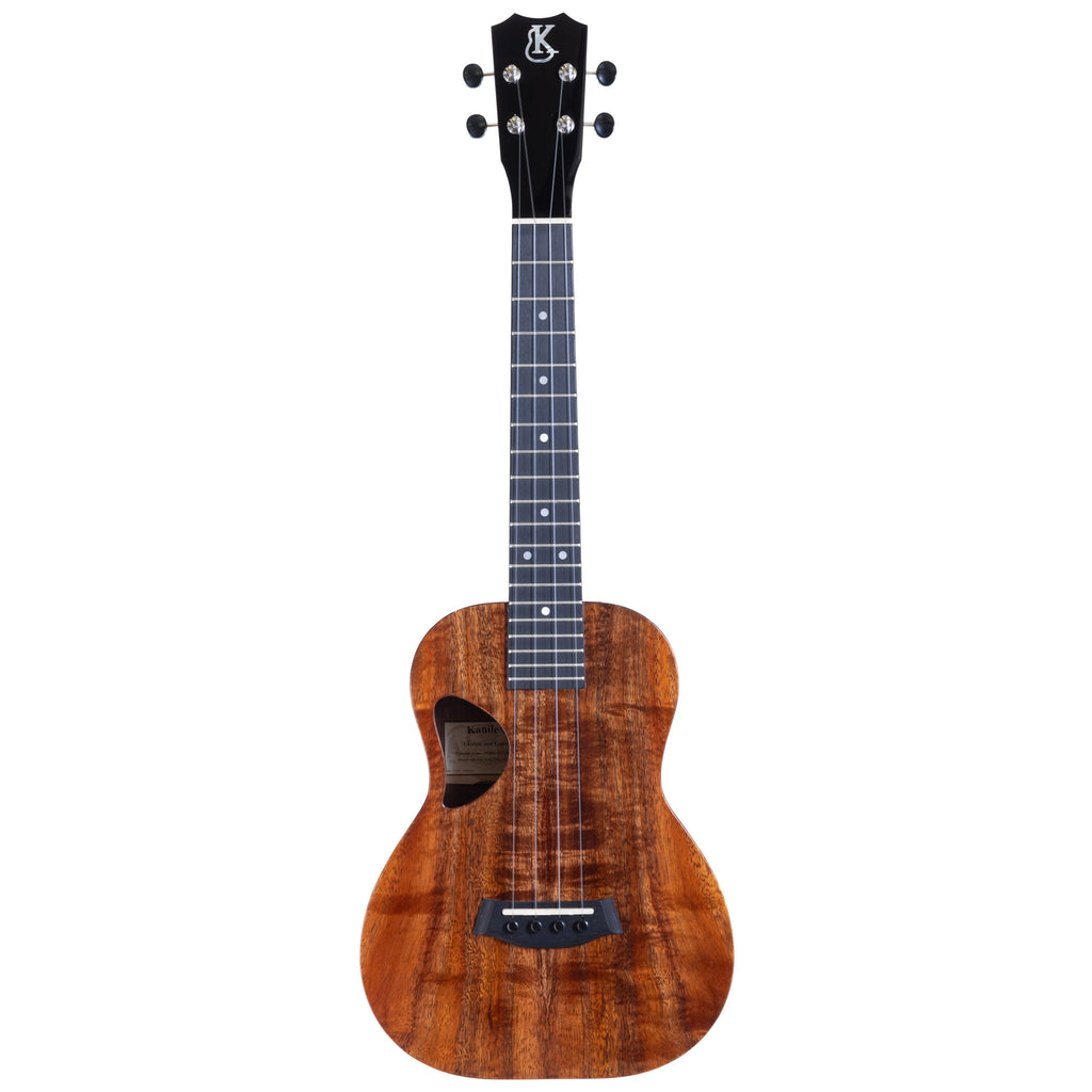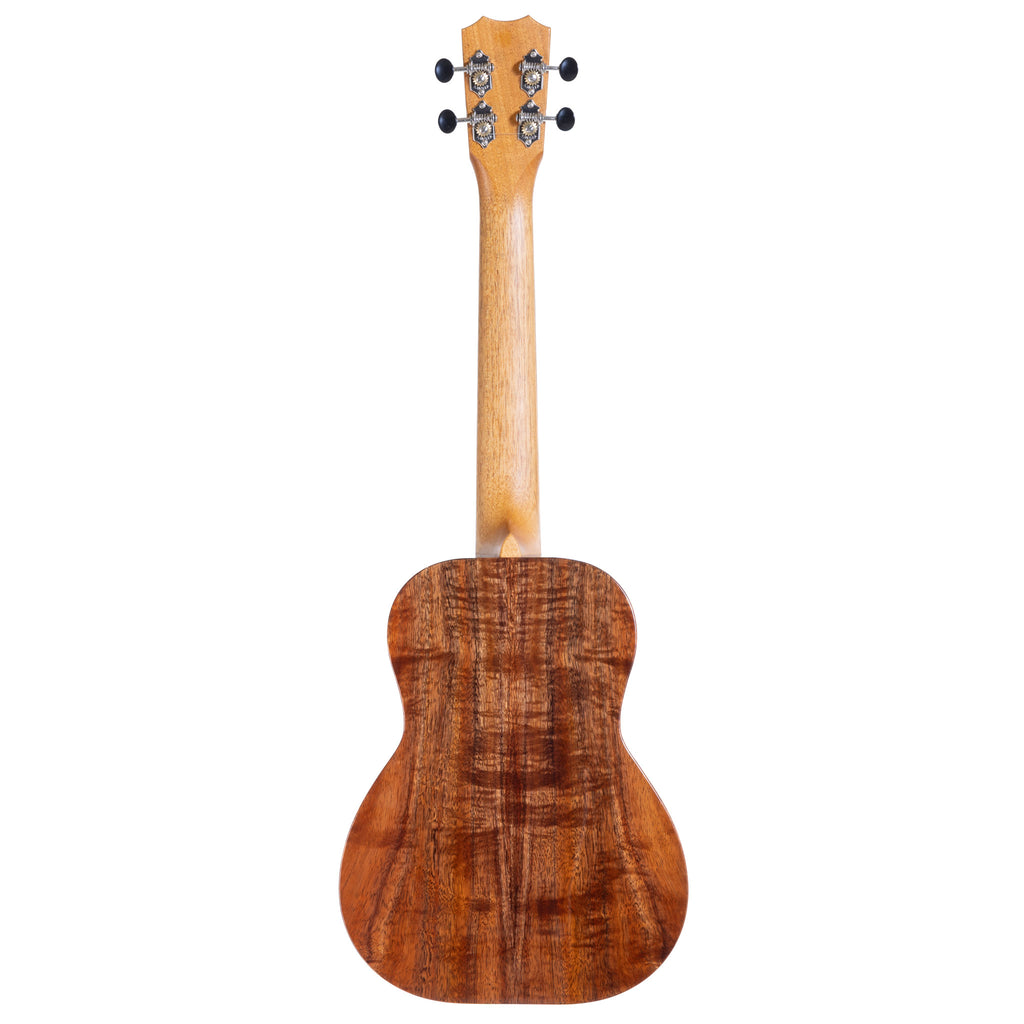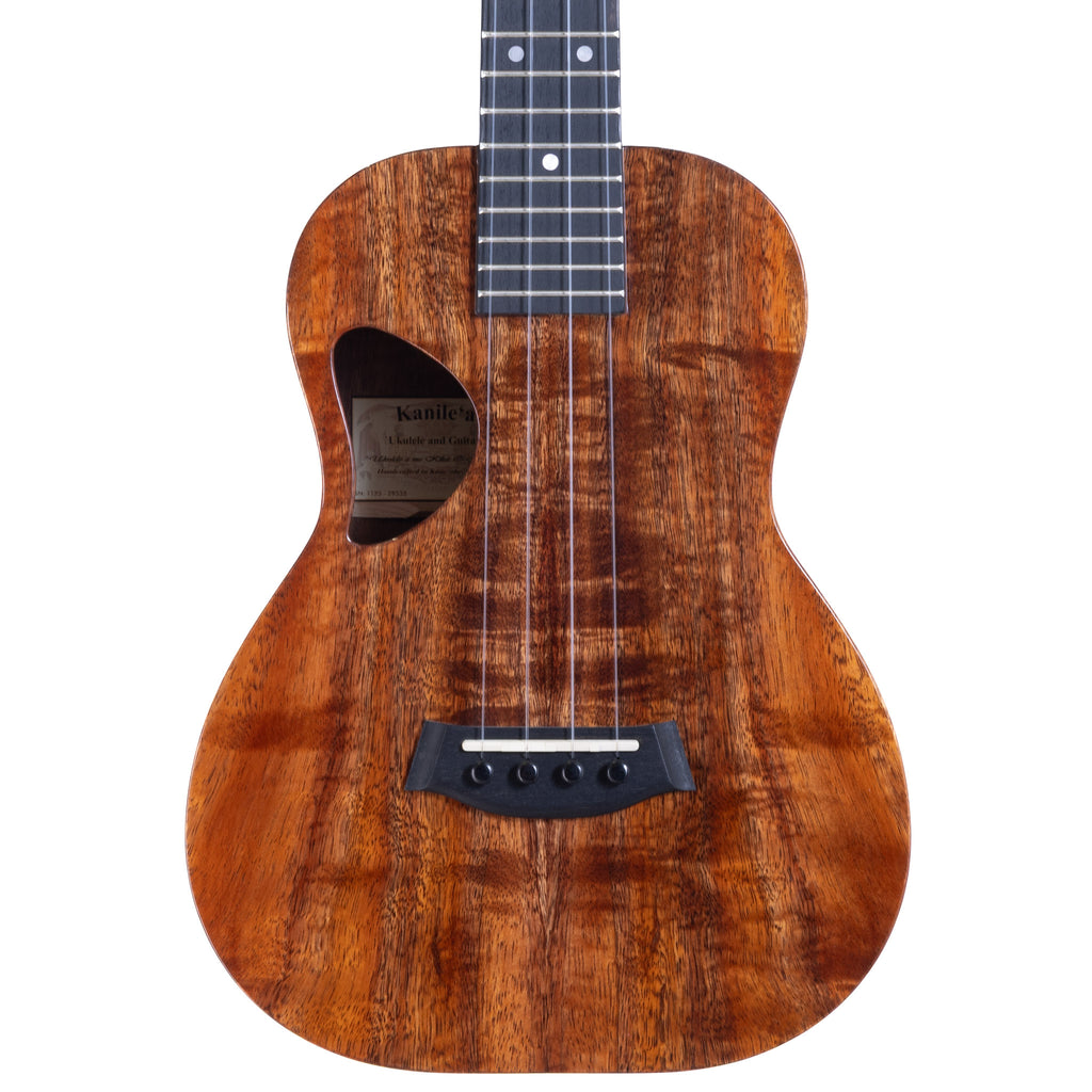 The Kanileʻa D-1 ʻUkulele stands out with its unique D-shaped sound hole, designed to enhance projection and create an immersive playing experience. Made from solid Hawaiian Koa, its natural beauty is showcased across all finishes, complemented by White Mother of Pearl inlays for a refined touch. Precision and stability come from the NuBone Nut and Saddle, Kanileʻa Crown Headstock, and Chrome Open Geared Tuners with a 16:1 ratio. Signature Kanileʻa features—including the Radiused Back, TRU-R Bracing System, and Ebony Bridge Pins—deliver exceptional tonal clarity, sustain, and resonance.