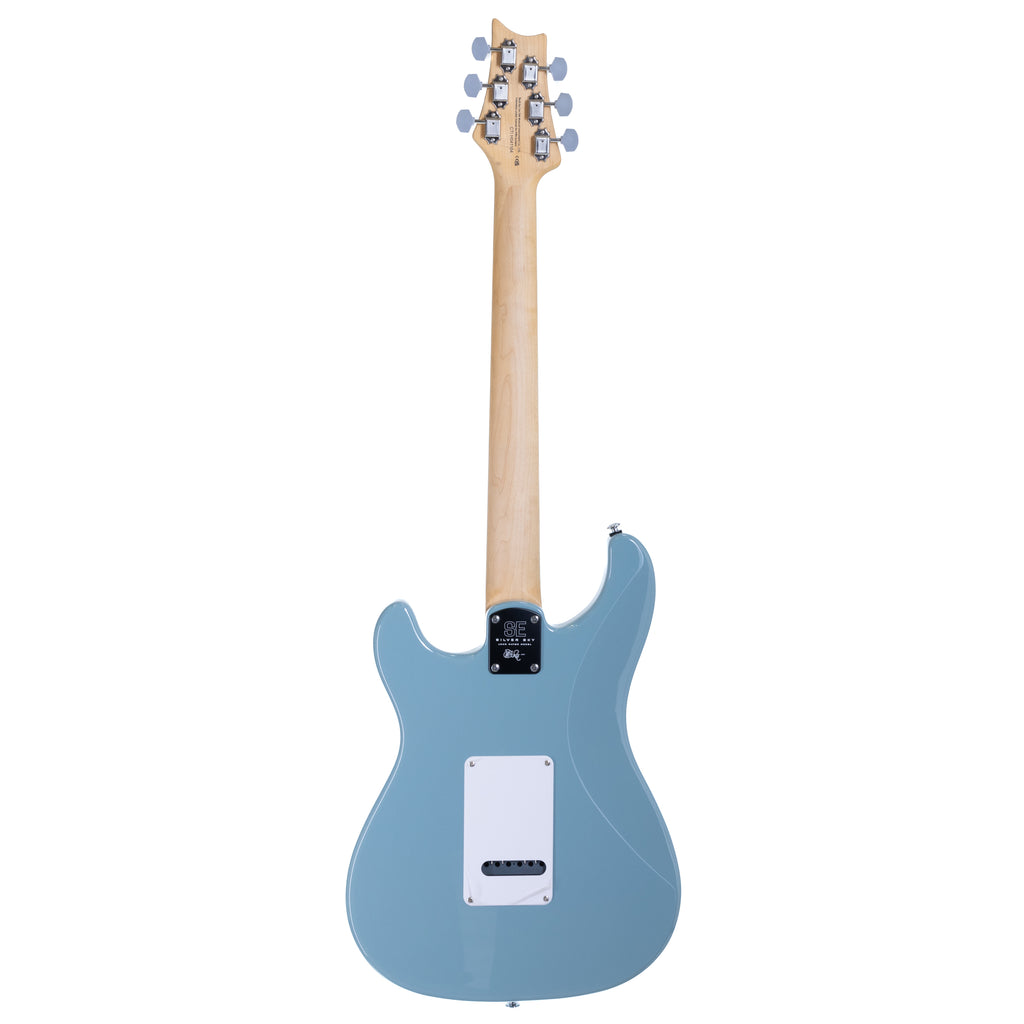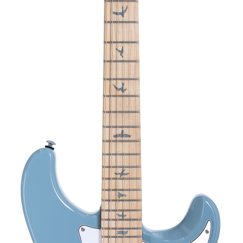 The PRS SE Silver Sky Maple starts with a poplar body, bolt-on maple neck, and maple fretboard with PRS trademark bird inlays. The 22-fret, 25.5” scale length neck features the original 635JM carve and an 8.5” fretboard radius, so the PRS SE Silver Sky will feel right at home. Plug it in, and the three single-coil 635JM “S” pickups will bark and sing. This guitar is anchored by a two-point steel tremolo, synthetic bone nut, and vintage-style tuners. Other design features include the PRS Silver Sky inverted headstock shape and the PRS double-acting truss rod (accessible from the front of the headstock for ease of use). Ships with PRS Classic 10-46 strings and gig bag.