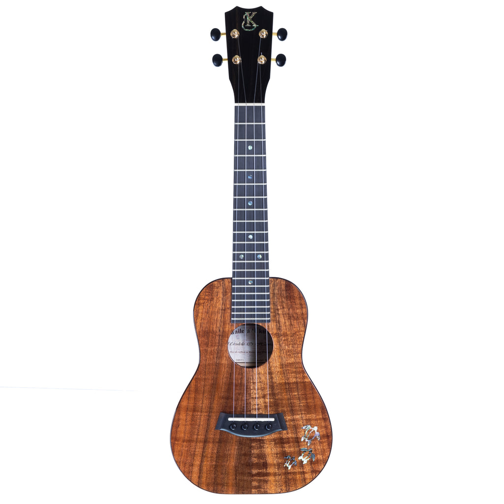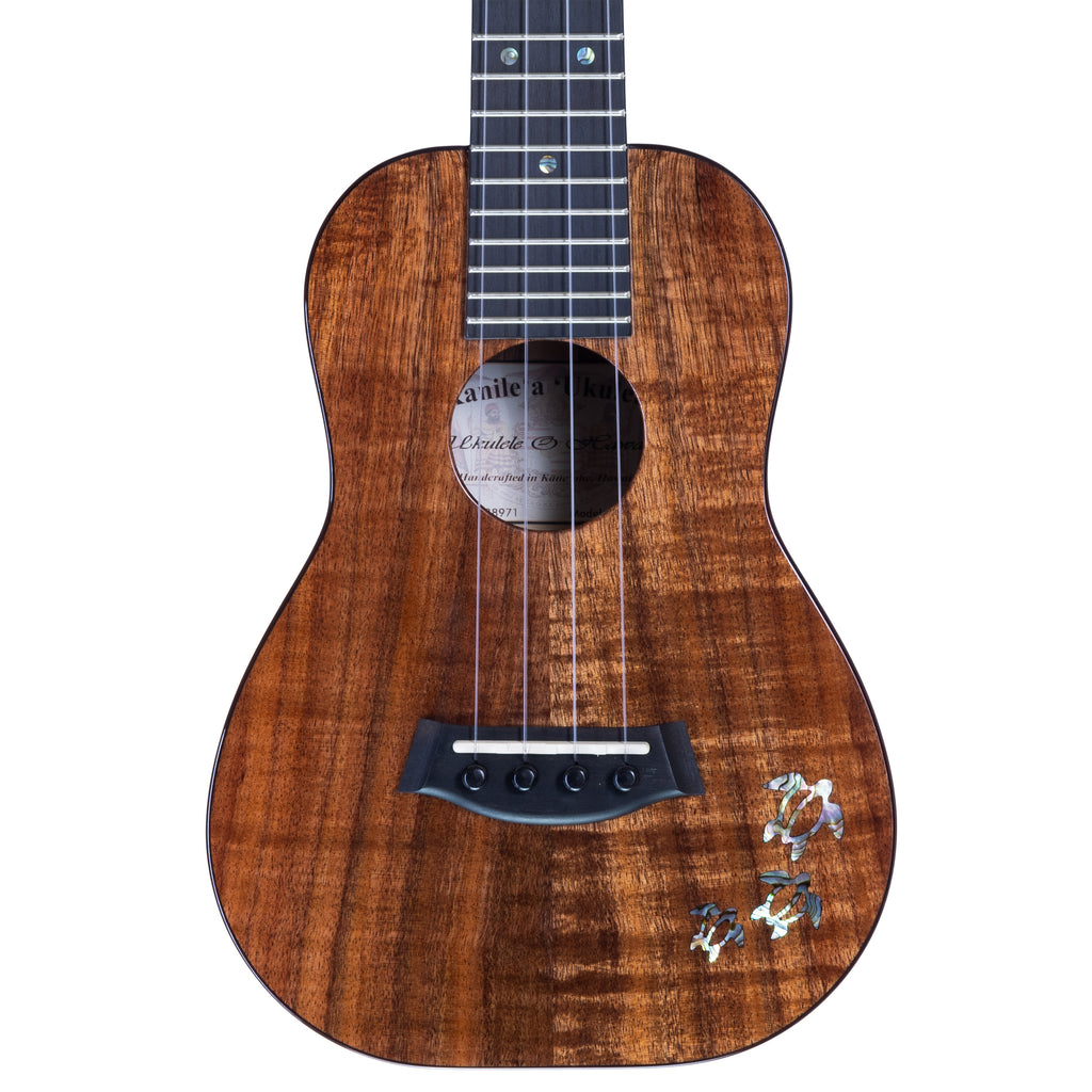 The Kanileʻa Honu Series ʻUkulele beautifully blends traditional Hawaiian craftsmanship with modern innovation. Crafted from solid Hawaiian Koa for the front, back, and sides, this ukulele delivers a rich, resonant tone and a visually striking appearance. The solid mahogany neck, paired with an ebony fingerboard, bridge, and head plate, ensures durability and a smooth, comfortable playing experience.