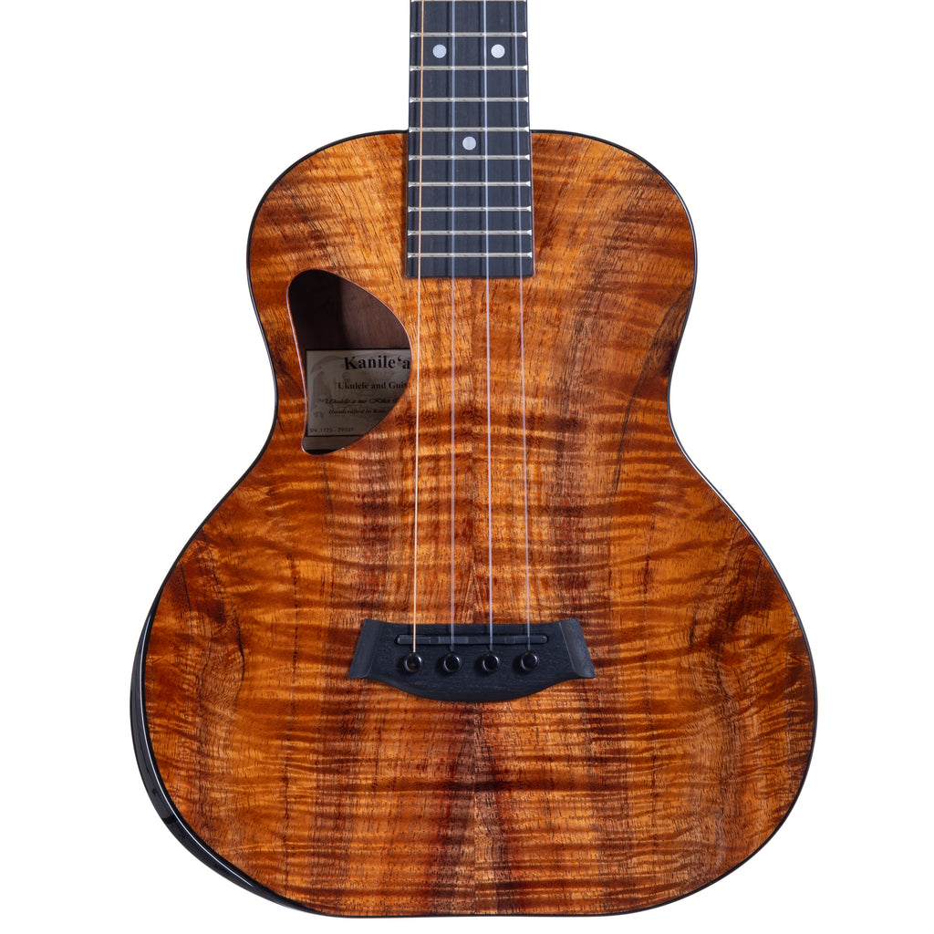 Kanileʻa’s signature features, including the Thin Slotted Headstock, Gotoh Stealth Tuners with an 18:1 ratio, Radiused Back, TRU-R Bracing System, and TRU-Reduction, ensure unmatched tonal clarity and stability. The oval side port further amplifies sound projection, making it ideal for any musical setting.
