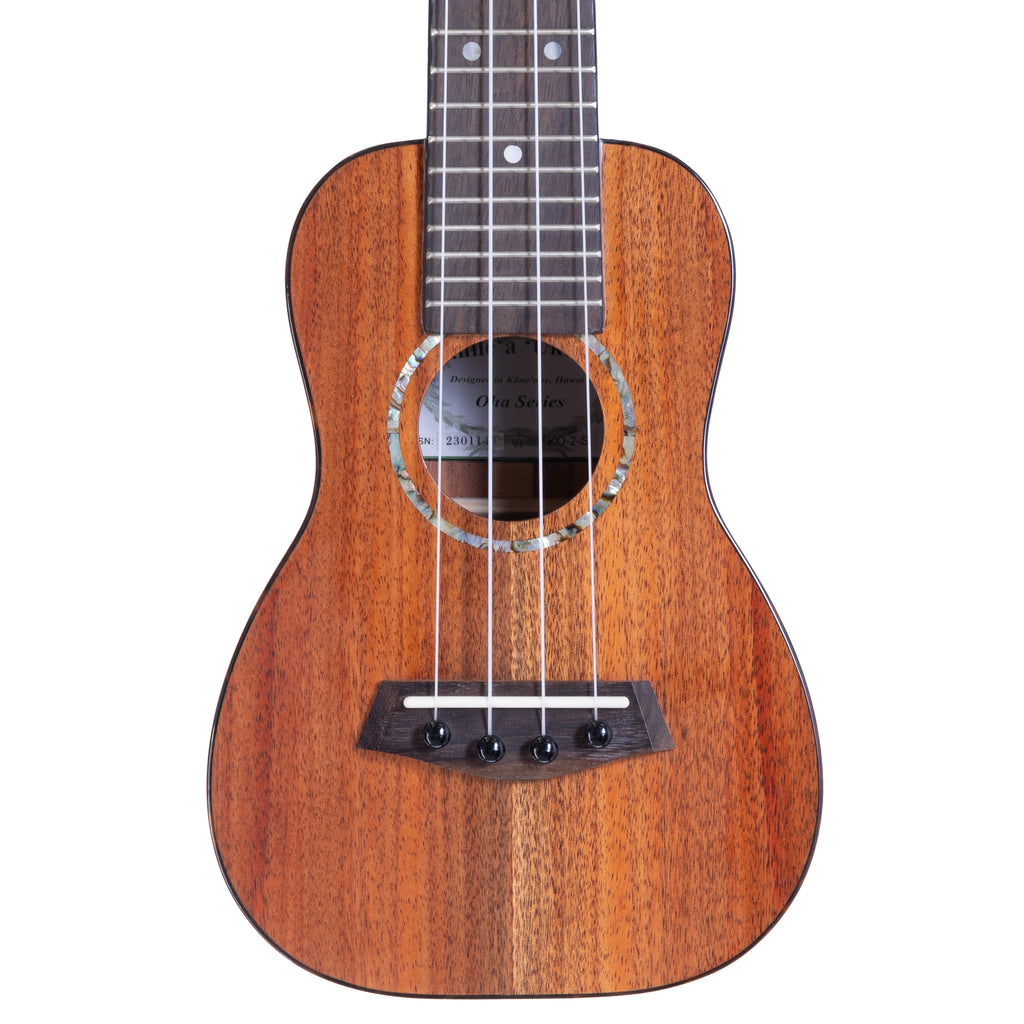 The Kanile'a KO-2 Oha Series ʻUkulele is a great entry to a solid Hawaiian Koa instrument. This ʻukulele features a solid Hawaiian Koa top, back, and sides, delivering a warm, resonant sound with impressive projection. The mahogany neck, paired with a rosewood fretboard and bridge, ensures durability and a smooth, comfortable playing experience.