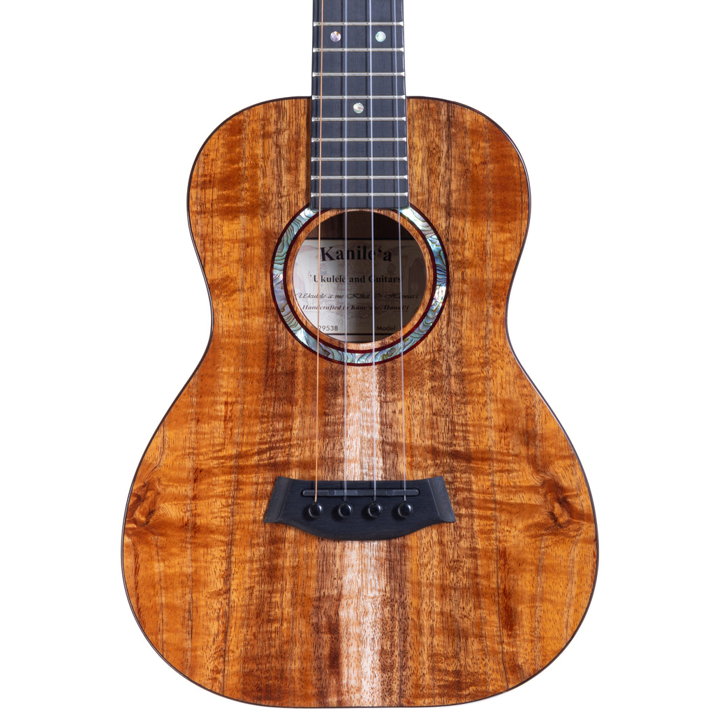 Experience the artistry of the Kanileʻa KPA Pro ʻUkulele, a testament to exceptional craftsmanship and rich, resonant sound. Constructed from premium Hawaiian Koa for the body and sides, this ʻukulele combines captivating aesthetics with a warm tonal depth. Its ebony fingerboard, bridge, and headplate, paired with the iconic Kanileʻa Crown Headstock, ensure durability and effortless playability.