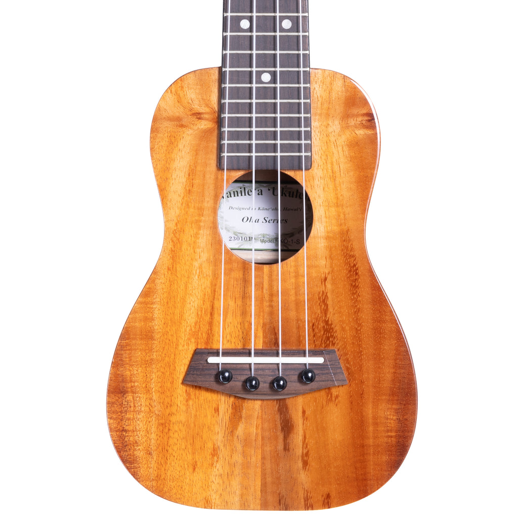 The Kanile'a KO-1 Oha Series Ukulele, a beautifully crafted instrument at a great price. Featuring solid Hawaiian Koa for the top, back, and sides, this ukulele offers a warm, vibrant tone and stunning visual appeal. The mahogany neck, paired with a rosewood fretboard and bridge, ensures durability and smooth playability.