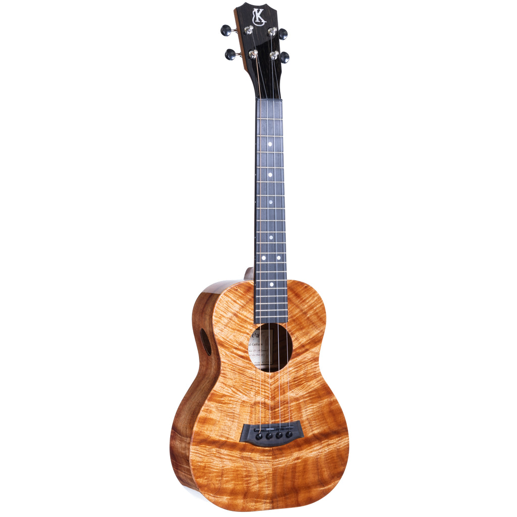 The body is framed with Snakewood front and back binding, an oval side port for player connection, and a Snakewood armrest for comfort. Chrome tuners with koa buttons, a graphite-infused TUSQ nut and saddle, and Kanileʻa’s proprietary TRU-R Bracing and TRU-Reduction systems deliver clarity, sustain, and balance that rival its artistry.