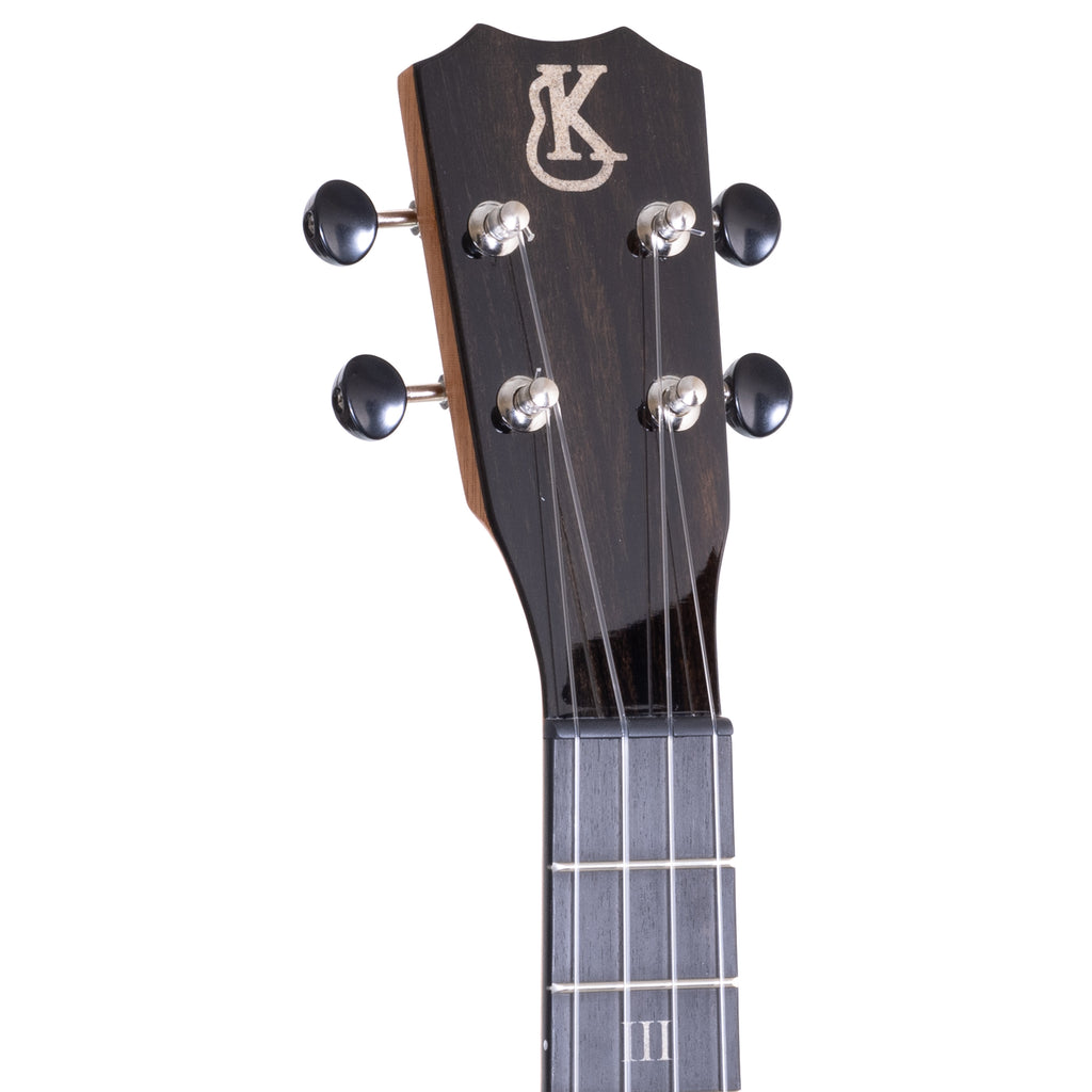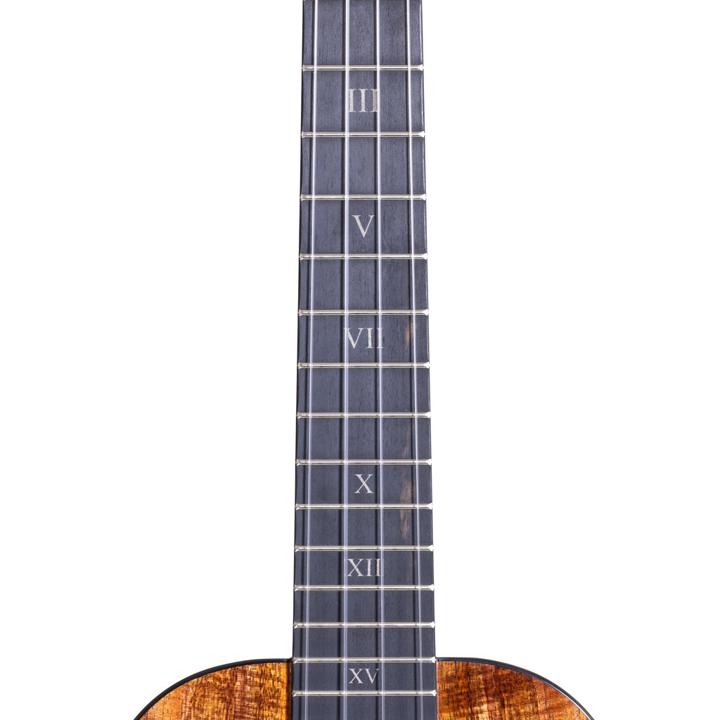 The ebony fingerboard and bridge provide a smooth, responsive feel, and the Kanileʻa Crown Slotted Headstock adds a classic touch. Custom Roman numeral position markers inlaid with Hawaiian beach sand give the fretboard a signature, symbolic aesthetic. The logo, also inlaid with sand, continues the earthy theme.