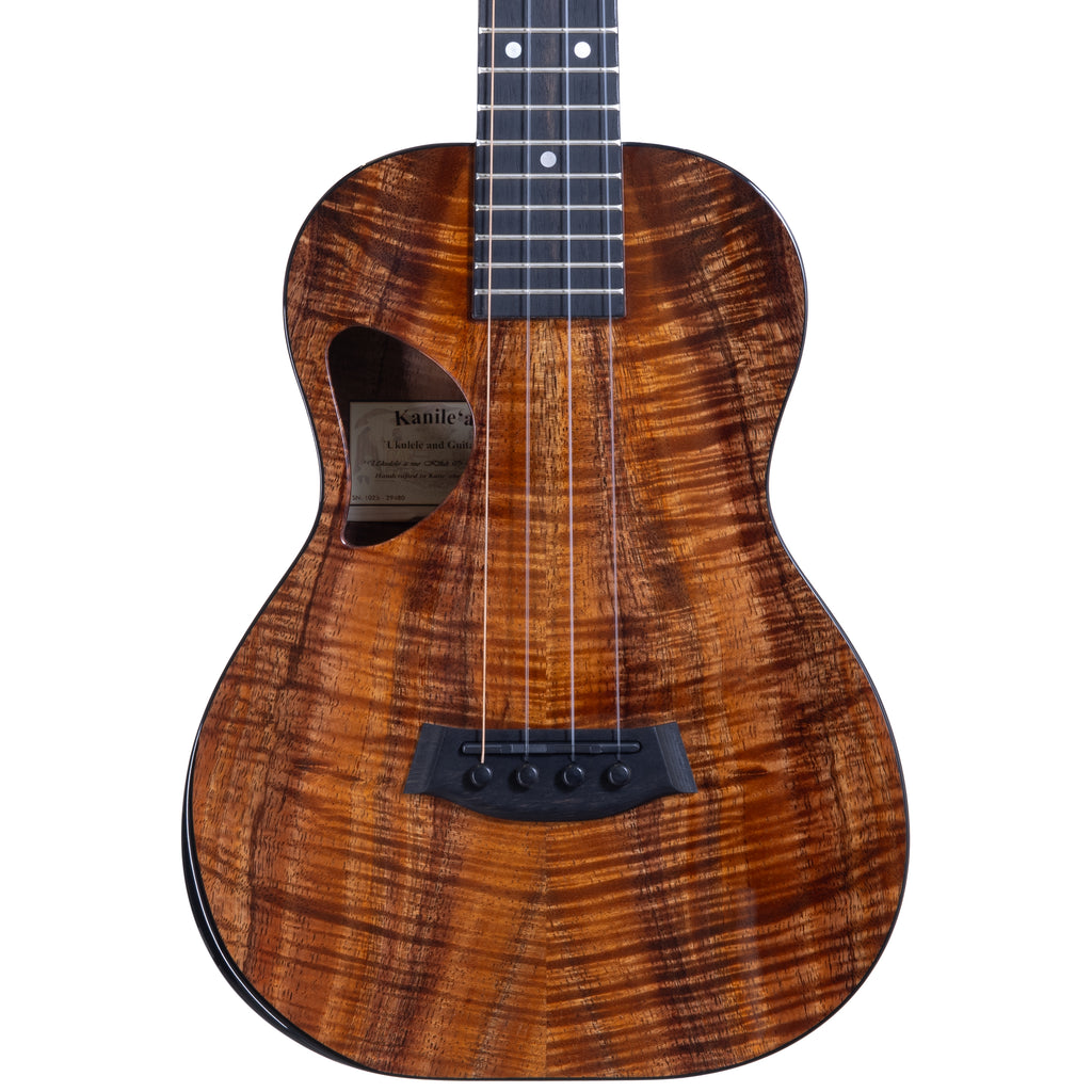 Kanileʻa’s signature features, including the Thin Slotted Headstock, Gotoh Stealth Tuners with an 18:1 ratio, Radiused Back, TRU-R Bracing System, and TRU-Reduction, ensure unmatched tonal clarity and stability. The oval side port further amplifies sound projection, making it ideal for any musical setting.