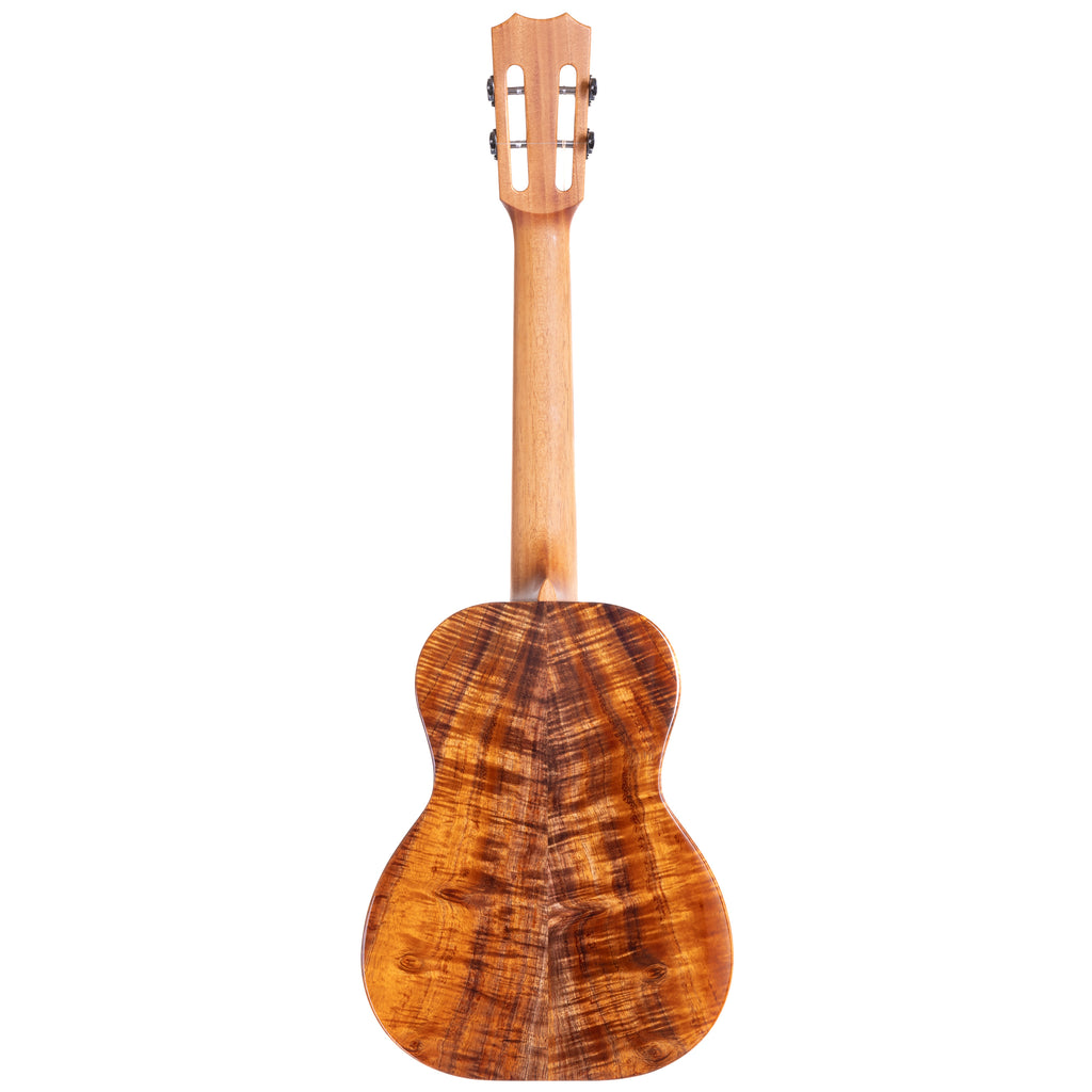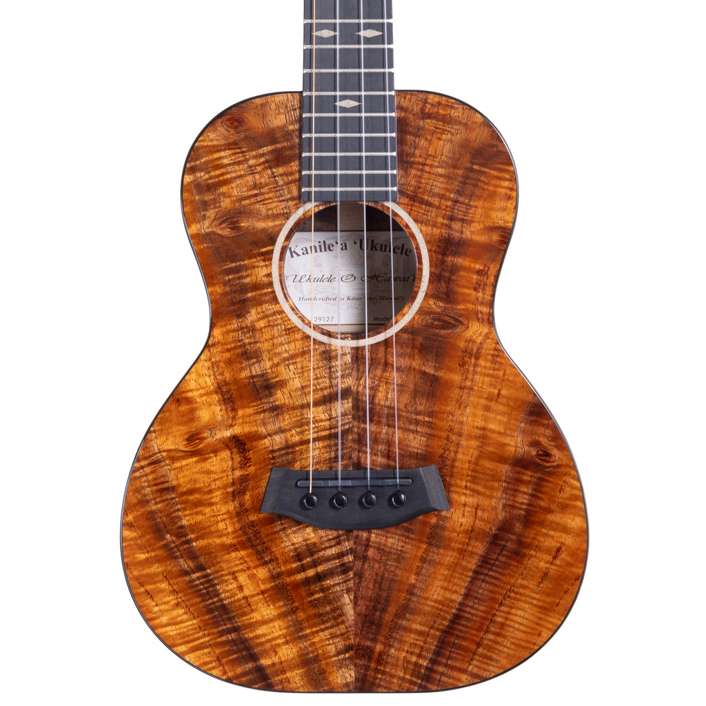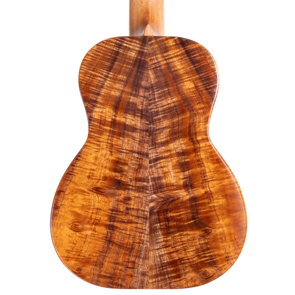 The Phoenix Slotted Headstock on the Kanileʻa KTR ʻUkulele is a standout feature that was exclusive to the Platinum models for five years before making its way onto a production model. This unique shape not only adds a distinctive aesthetic appeal but also enhances the instrument's performance.