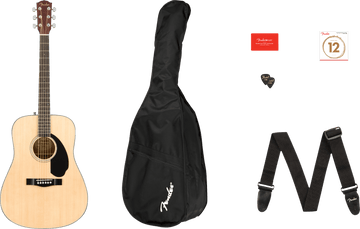 A great choice for any aspiring player, the re-designed CD-60S delivers a bold playing experience. It boasts upgraded features that players of all types are sure to love, including a solid spruce top, comfortable walnut fingerboard with rolled edges and a new, easy-to-play neck shape. The CD-60S features a mahogany back and sides to complement its solid spruce top for warm and balanced tone. The dreadnought-sized body provides traditional full-bodied output with plenty of projection, so whether you're playing at home, around the campfire or at the coffee shop, you'll get classic Fender sound and vibe with the CD-60S. This complete starter pack includes the CD-60S, along with a gig bag, picks, a strap, a spare pack of strings and a free 90-day subscription to Fender Play with access to hundreds of online lessons - everything you need to start playing instantly.
