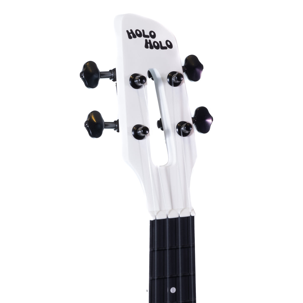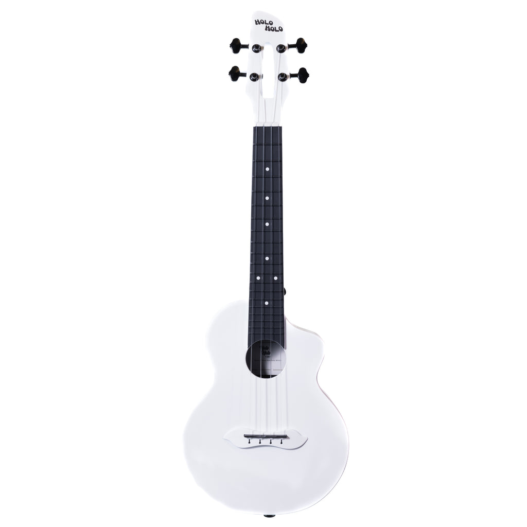 All New for 2025, Holo Holo by Kanile'a. Holo Holo is a term used in Hawai'i to prompt adventure and fun which these 'ukulele are perfect for! These Holo Holo models are Concert scale with a thin body. They are a single piece injection mold plastic with a pull through bridge. Fitted with Der Jung tuning keys and fluorocarbon strings and a side port, not only can you take them anywhere... they sound AWESOME! Take a listen for yourself!
